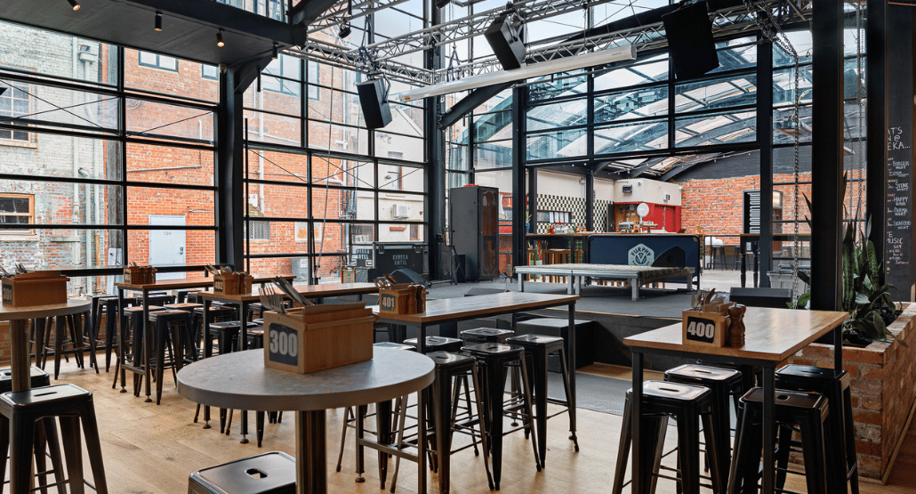Ideal for corporate or private events, our Band Room can accommodate up to 120 guests for cocktail-style gatherings. Equipped with a state-of-the-art stage and audiovisual technology, it’s perfect for presentations, conferences, and live performances.